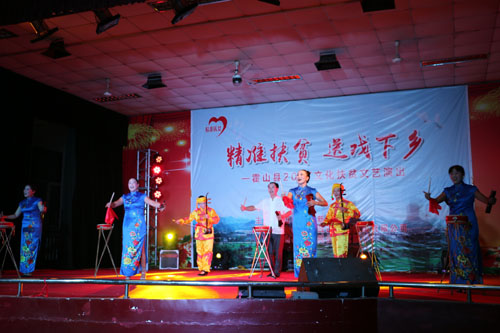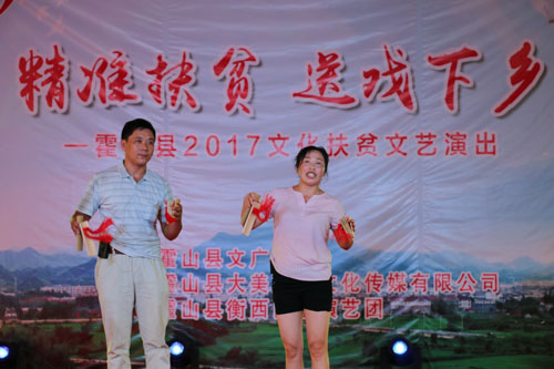 为树立文明新风,助力脱贫攻坚,激发内生动力,8月26日,由霍山文广新局主办,大美西山文化传媒有限公司和衡西民俗演艺团承办的“精准扶贫,送戏下乡”首场演出在上土市中学礼堂举行。县委常委、宣传部长曹君,县文广新局(体育局、版权局)主要负责人以及皖西学院部分教授现场观看了演出。