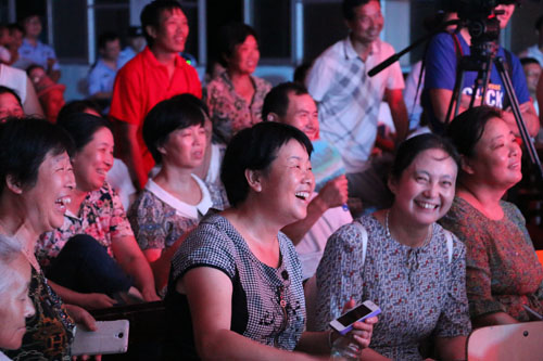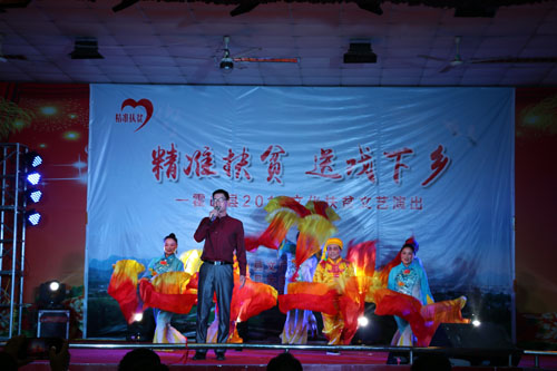 这场演出以西山民俗文化为载体,通过山歌、小品、打鼓书、打花鼓、黄梅调、庐剧歌等老百姓喜闻乐见的艺术形式,宣传了党的精准扶贫政策,展现家风、家教建设与精准扶贫工作队下乡进村给农村带来的可喜变化。精准扶贫的政策宣传通过演员们精彩传神的表演深入人心,赢得了台下观众阵阵掌声。许多现场群众都在拿手机拍视频、上传朋友圈,为这种接地气、冒热气、添生气的送戏下乡政策宣讲形式点赞喝彩。