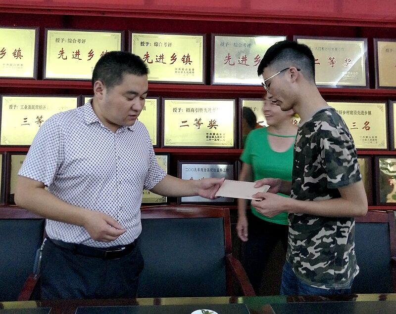 近日,安徽万隆公司潘云峰总经理来到磨子潭镇,亲自入户走访调查,最终决定帮扶吴昌霞儿子在内的两名大学新生,对他们进行一对一的资助,每学年给予每个学生3000元的资助金,帮助他们完成四年的大学学业。