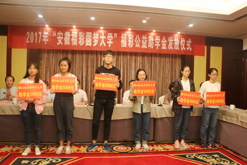 发放仪式上,市福彩中心负责人通报了全市“安徽福彩圆梦大学”公益助学金情况,受助学生代表作了表态发言,部分受助学生现场接受了助学捐赠。