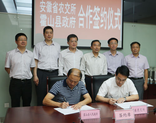 郝晓武代表县政府与省公共资源交易集团签订合作协议。刘先杰与项跃文共同为省农交所霍山分所揭牌。