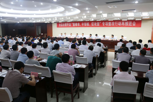 9月14日,全县扶贫开发“重精准、补短板、促攻坚”专项整改行动再推进会召开。县领导梁国金、李玉武、董永来、罗绍明、王光军、陈明龙、储诒权、华心扬、潘传才、檀竹茂等出席会议。