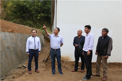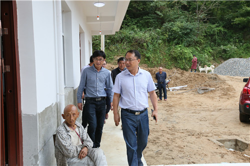 潘传才一行先后来到平田村土门坳、平田二期两个安置点,实地查看与了解工程建设情况。在安置点二期现场,当潘传才看到贫困户王建国、孙义朋门前大红灯笼高高挂、室内装饰一新时感到十分欣慰,他高兴地说,发奋图强换新貌,饮水思源谢党恩!