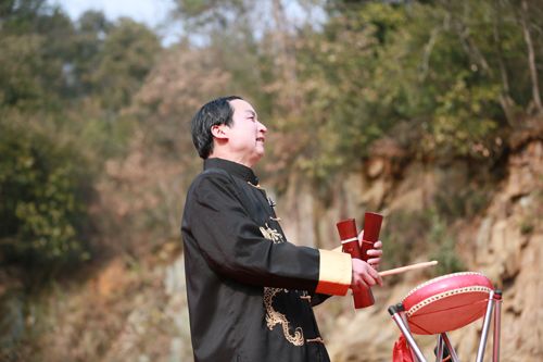 金秋盛会北京开,全国人民乐开怀。万众一心跟着党,宏图又展千秋业。鼓板咚咚唱起来……10月16月,霍山县西山文化研究会会员、现年55岁的农民说唱艺术家郭庆安在村头为村民表演大鼓书。