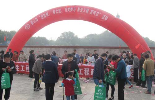 10月22日上午,霍山县组织县民生办、县直16个民生工程牵头单位在县文峰广场开展以“送戏进万村喜庆十九大”为主题的民生工程集中宣传日活动。