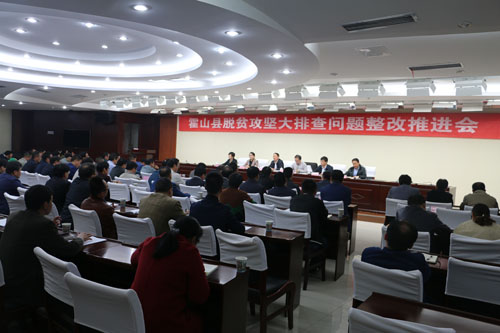 10月29日,霍山召开脱贫攻坚大排查问题整改推进会。县领导梁国金、王光军、张润之、纪昌国、朱静、廖华,以及各乡镇、县扶贫移民局、县脱贫攻坚十大工程牵头单位相关负责同志参加会议。县委常委、组织部长王光军主持会议。