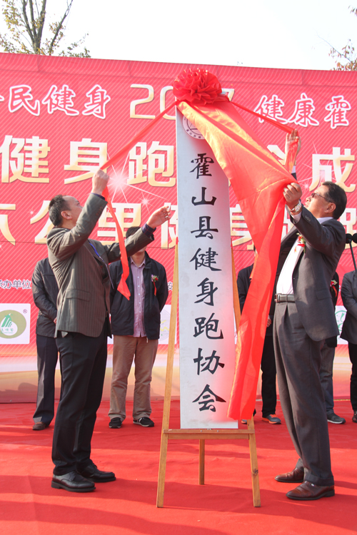 10月28日,霍山县健身跑协会在高桥湾现代产业园双湾广场正式揭牌成立。县文广新局局长但修胜和县健身跑协会会长王寿祥共同揭牌。高桥湾现代产业园管委会、县民政局、县总工会、县地税局等单位负责人出席揭牌仪式。霍山县田径协会、金寨嗨跑团等健身团体分别发来了贺信、送来了锦旗表示祝贺。