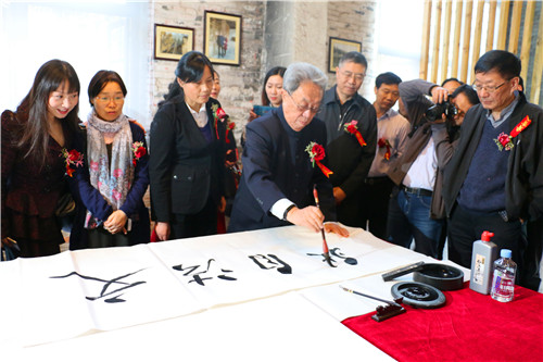 王蒙与驻村作家亲切会谈,并欣然为作家村题词“文法自然”。