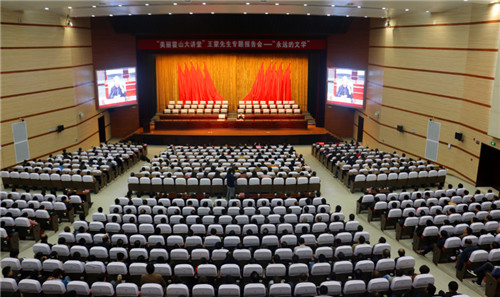 在党的十九大胜利闭幕之际,10月31日,“美丽霍山大讲堂”专题报告会在县会议中心举行。中国当代著名作家、学者、文化部原部长王蒙先生应邀作一场题为“永远的文学”的专题报告。省内外著名作家,县四个班子全体成员,各乡镇宣传委员、文化站长,经济开发区、高桥湾现代产业园主要负责人、分管负责人,县直各单位副科级以上领导干部,县委宣传部、县文广新局全体干部职工,县各文艺社团负责人,小南岳文学社、西山文化研究会全体成员,共700余人聆听了报告会。活动由县委副书记、县长项跃文主持。