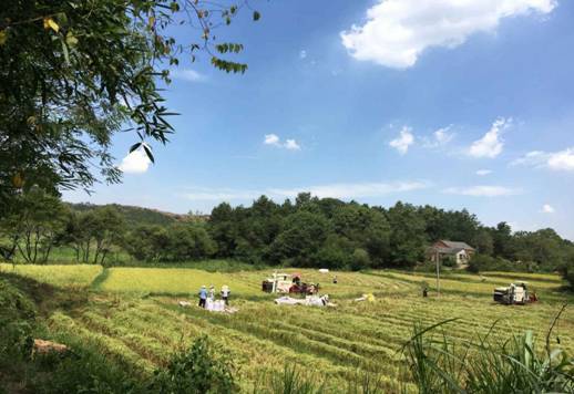 (下符桥镇是霍山县主要产粮镇之一,放眼望去,万亩良田全是金黄色一片。近年,采用虾鱼共生新型养殖模式,水稻与虾之间形成合理的生态平衡,一水两用、一地双收,实现虾肥稻香的生态双赢。)