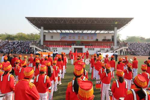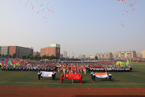 伴随着激昂澎湃的《运动员进行曲》,在国旗、校旗、会旗的引领下,鼓号队方阵、鲜花方阵、气球方阵、彩旗方阵,以及造型吸睛、新颖别致的各参赛代表队意气风发地走过主席台,进入会场。