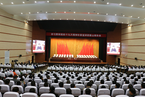 11月14日,学习贯彻党的十九大精神市委宣讲团霍山报告会在县会议中心一楼报告厅举行,市委宣讲团成员、市委常委、市纪委书记汪德满作宣讲报告,县委副书记、县长项跃文主持报告会并讲话。县四个班子领导,县直各单位副科级以上领导干部,各系统党委书记,省市驻霍单位党组织负责人,各乡镇党委书记或乡镇长、纪委书记、宣传委员,经济开发区、高桥湾现代产业园工委或管委主要负责人、纪工委书记、宣传委员,县第九期青干班全体学员,县规模企业党组织主要负责人共1000余人聆听报告。