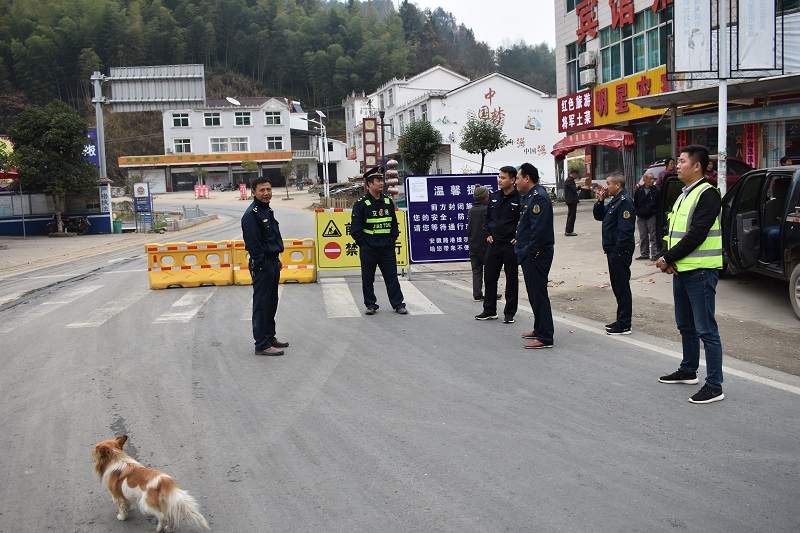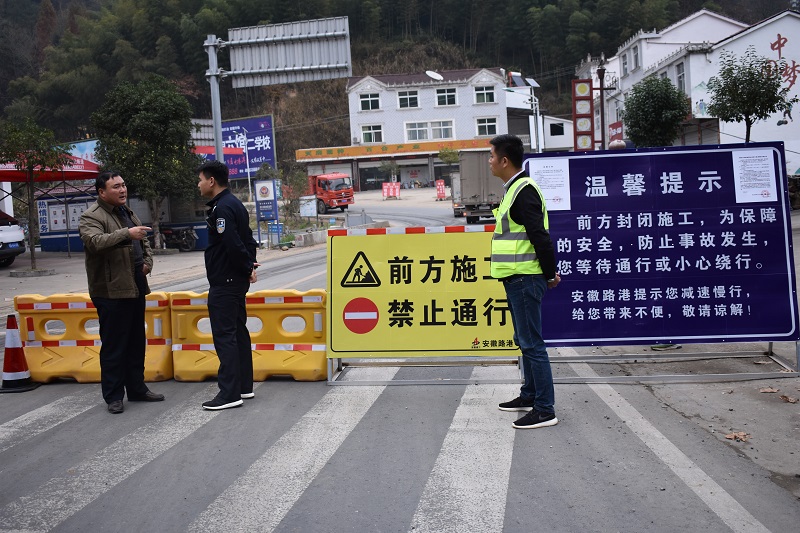 为减少封路施工期间对过往车辆及乘客安全通行造成的影响,保证工程顺利进行,在道士冲岔路口设立执勤点实行交通管制,对去霍山方向的大型车辆进行分流、劝导,指导车辆绕行。根据大队统一安排,漫水河中队抽调民警于11月16日下午正式进驻道士冲执勤点。