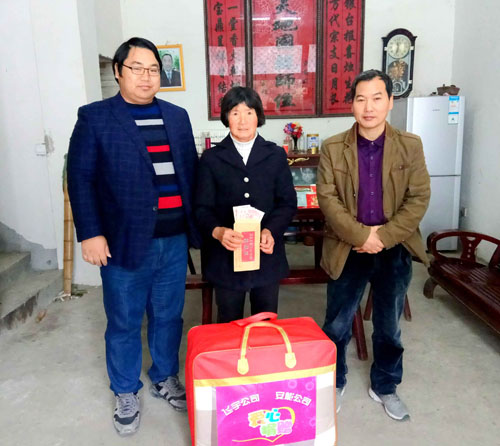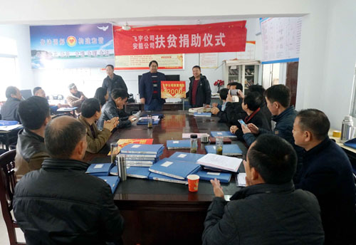11月19日,县水务局全体帮扶干部利用周末休息时间,联系组织爱心企业六安市飞宇建筑有限公司和霍山安能水电开发有限公司,来到上土市镇禅堂村为贫困户捐赠物资。