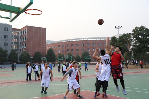 此次篮球赛由校工会和体育教师组精心筹备,共有小学部、七、八、九、高一、高二、高三年级和文峰行管八支队伍近100名教职工参赛。