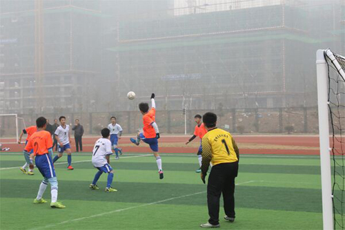 根据比赛规则,该校在半决赛中迎战的是D组第一金安区清水河学校代表队,该队在去年和前年的比赛中都获得了第二名的成绩,实力不凡,主教练胡国兵高度重视,在赛前给队员们分析形势,讲解技战术配合,积极调度场上队员,上半场双方均没有获得进球,下半场开场5分钟左右7号范思雨趁对方守门员抱球不稳补射,将球送进对方球门,1:0暂时领先,下半场还剩8分钟左右的时候,对方射门打在了文峰5号梁涛的手臂上,裁判员吹罚了点球,对方队长罚球命中,将比分扳成了1:1,最终进入点球大战,文峰门将戴志超同学沉着冷静,接连扑掉对方罚球,凭借后卫梁涛罚中的唯一一粒点球将比分定格在2:1,文峰顺利挺进总决赛,迎战同样在半决赛获胜的舒城二中代表队。