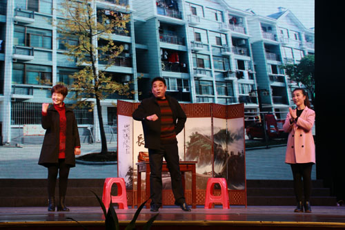 晚会在合唱《没有共产党就没有新中国》中拉开序幕,黄梅戏表演《喜庆党的十九大》以群众熟悉的表演形式表达了对党的十九大热烈召开的欢喜之情;孩子们在经典诵读《我骄傲我是中国人》中,以稚嫩的声线表现了对祖国的热爱之情;党的十九大召开之后,各地都在认真学习宣传贯彻报告精神,小品《家庭宣讲团》以社会的最小组成单元“家”为舞台,上演了一场别开生面的家庭宣讲,每一位家庭成员结合自己的生活,用朗朗上口的语言讲解党的十九大精神。演出高潮迭起,精彩纷呈,不时博得台下观众热烈的掌声。最后,晚会在歌伴舞《我爱我的祖国》中落下帷幕。
