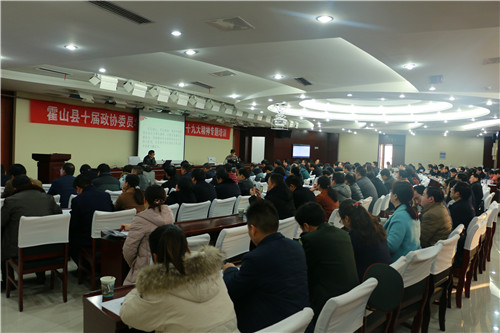 12月24日上午,县政协十届二次会议组织全体参会委员集中学习十九大精神专题培训,县政协主席尹如江、副主席彭光存、郭群英、方庆林与广大政协委员共同参加培训。