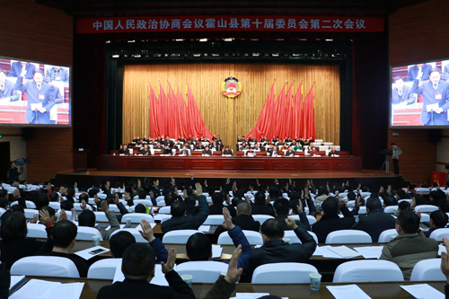 12月25日上午10:00,中国人民政治协商会议霍山县第十届委员会第二次会议举行第三次全体会议和闭幕式。县领导梁国金、孙瑞荣、李玉武、尹如江、董永来、储诒权、廖华、郭群英、彭光存、方庆林、秘书长汪囯友在主席台前排就座。