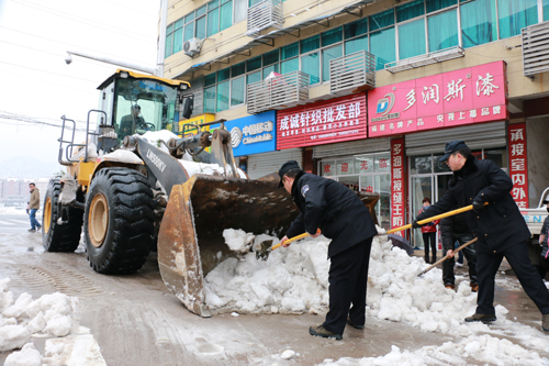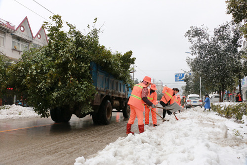 连日来的暴雪使得霍山城区道路积雪严重,路边绿化树木被压断,严重影响了广大群众和车辆的出行。为此,霍山县积极组织县直机关干部职工,利用中午时间,在城区主干道和积雪严重的小街小巷进行人工除雪和清障,并安排铲雪车等大型机械设备,加快清理积雪,转移被折断折损的绿化树木,全力恢复城区正常交通秩序,维护群众出行安全。