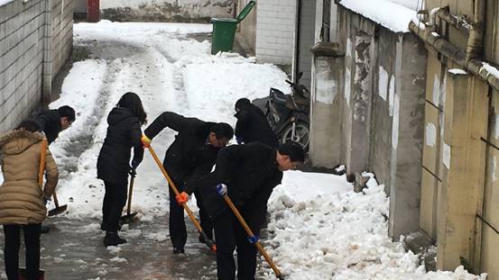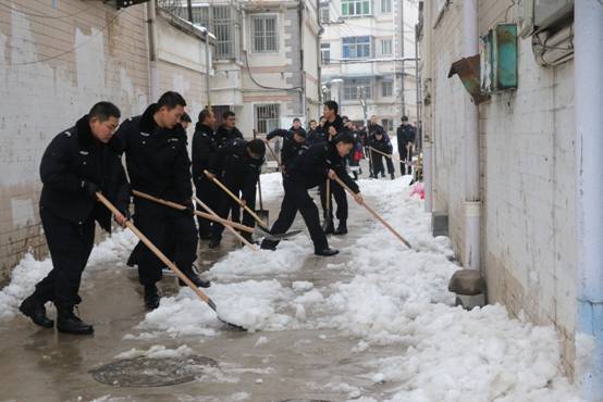 1月4日和1月5日下午,政法系统各单位组织党员干部开展了两场义务扫雪活动,清扫单位门前道路和包保区域。雪花飞舞,寒风凛冽,党员干部们不畏严寒,手持铁锹、扫帚,扫雪除冰,干劲十足,经过一个多小时的努力,畅通了一条条道路,解决了群众出行难。(甄雷)