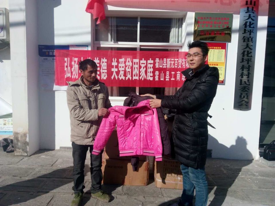 活动中,新元百货有限公司为该村贫困户捐赠各类冬季服装近200件,价值30000余元;工商联为帮扶对象户推销土鸡60余只,价值7000余元。此次机关单位和爱心企业的携手扶贫活动,为大化坪村贫困户们送上了冬日的温暖。(杨锐)