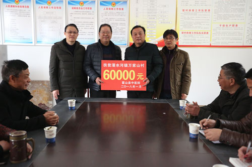 座谈会上,霍山中医院向万家山村捐赠了中药材基地建设发展基金6万元。(刘伟)