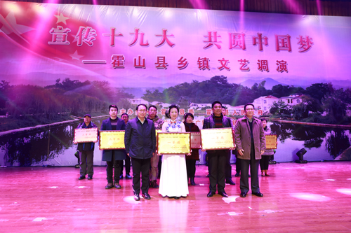1月17日晚,霍山县举办了主题为“宣传十九大,共圆中国梦”的乡镇文艺调演,县领导尹如江、潘传才、张润之、郝晓武、朱静、刘东、叶登江与广大干群一同观看了演出。演出通过群众自编自导自演的形式,以贴近生活、贴近实际、贴近群众的方式进行文艺宣讲,让党的十九大精神家喻户晓。