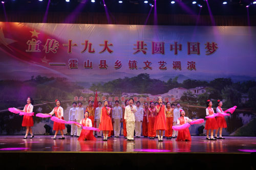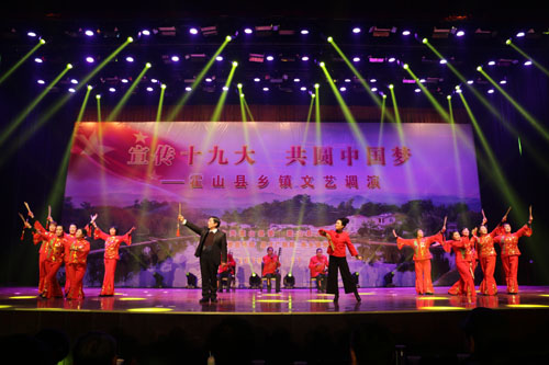 整场晚会紧扣党的十九大精神,以反映霍山人民群众昂扬奋发的精神风貌为主题,精心创作了20个节目,表演者全是来自全县乡镇的民间艺人,他们用自己朴实的语言、生动的表演加入到宣传党的十九大精神的队伍中去,向身边的群众传递党的声音、传播党的政策。