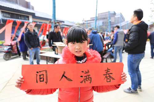 一幅幅遒劲有力的大字仿佛一颗颗熠熠生辉的珍珠,给人以美的享受:一幅幅红红的春联犹如一只只报春的知鸟,为人们捎去春的讯息,送上吉祥与祝福。(文/图刘伟)
