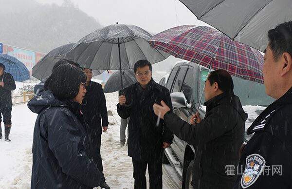 项跃文来到霍山高速公路出入口以及国道105、省道318沿线,详细了解了雪凝道路路况、车辆安全等情况,对广大干群积极行动铲雪扫路、洒盐除冰,公安交警一线指挥,全天候疏导车辆通行等做法表示肯定。