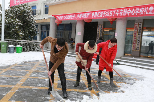 1月25日,漫水河镇街道铲雪现场秩序井然。