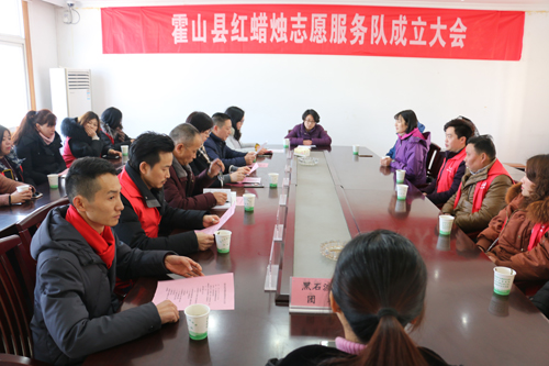 2月6日,霍山县红蜡烛志愿服务队成立大会在黑石渡镇举行,团县委、文明办、民政局相关负责人以及部分红蜡烛会员出席活动。