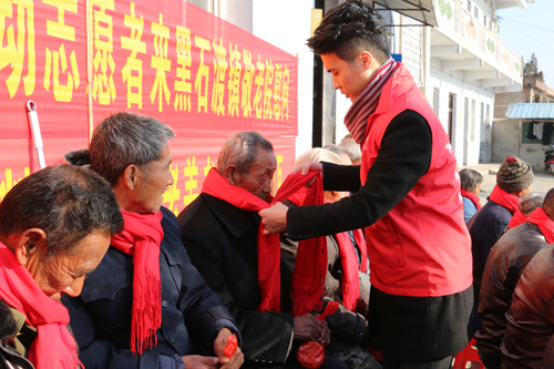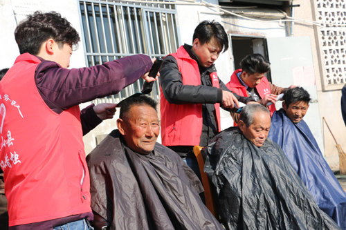 仪式结束后,志愿者们还来到黑石渡镇敬老院,为孤寡老人送去了红围巾和其他爱心物资,并就地开展义剪活动,剪发的过程中陪伴老人聊天,关心老人生活。