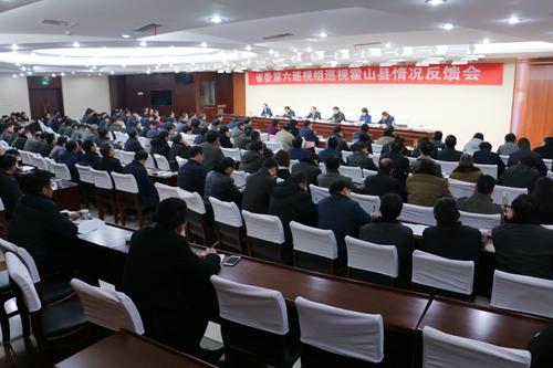 根据省委统一部署,2017年11月6日至12月30日,省委第六巡视组对霍山县进行巡视。经省委巡视工作领导小组同意,2018年2月8日,省委第六巡视组向霍山县反馈巡视情况。省委第六巡视组组长何一枫代表省委第六巡视组向霍山县领导班子反馈了巡视情况,副组长俞伦洋传达了省委书记李锦斌在省委“五人小组”听取巡视情况汇报会上的讲话精神,副组长崔嵚、刘立恒参加反馈会议。六安市委常委、市纪委书记、市监察委主任汪德满代表市委对巡视整改工作提出要求。县委书记梁国金主持会议并作表态发言。