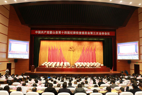 2月23日,中国共产党霍山县第十四届纪律检查委员会第三次全体会议召开。会议深入学习贯彻十九届中央纪委二次全会、省纪委十届三次全会和市纪委四届三次全会精神,全面总结去年纪检监察工作,深入分析当前形势,安排部署今年任务。县领导梁国金、项跃文、李玉武、尹如江、董永来、朱卫东、王光军、陈明龙、储诒权、华心扬、潘传才、檀竹茂、王焱等出席会议。