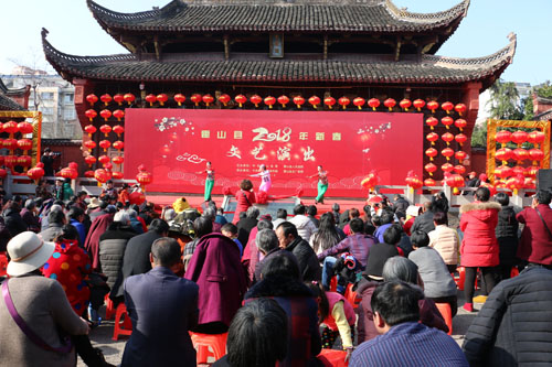 2月26日,农历正月十一,霍山县“春节文化周”系列之文艺汇演在县文庙精彩上演,吸引近千名群众到场观看。