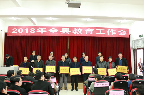 会议对2017年度教育教学管理工作先进单位、教育信息化应用工作先进单位、校园及学生安全管理工作先进单位和义务教育经费保障机制改革先进单位进行了表彰颁奖。