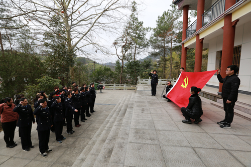 3月8日,妇女节,霍山县漫水河镇西镇暴动纪念馆庄严肃穆,当天上午十时许,来自霍山公安20多位女民警在鲜艳的党旗下集体宣誓,不忘初心,不辱使命,筑我长城,共建国防。(文/图刘伟)