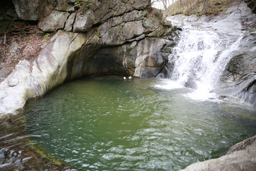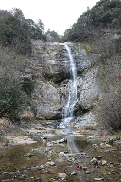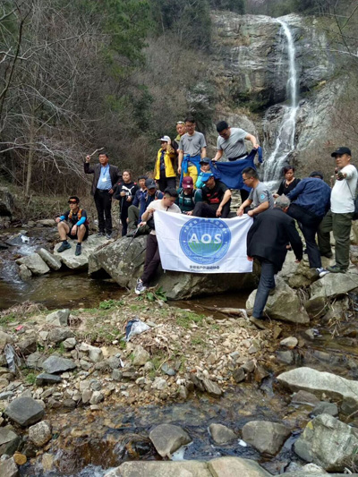 3月14日,来自省城合肥户外运动健将在洒水岩瀑布前合影留念。