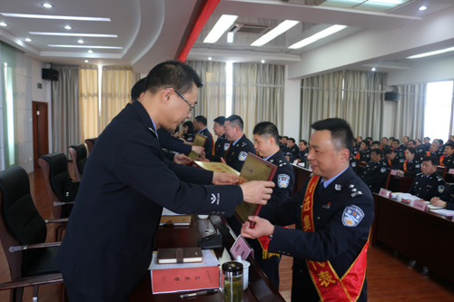 会议宣读了《关于表彰2017年度全县公安工作先进单位和先进个人的决定》以及《关于表彰2017年度优秀辅警的决定》;向部分先进单位和先进个人颁发了奖牌和荣誉证书;治安大队、上土市派出所、刑侦大队、落儿岭派出所四家单位作了交流或表态发言;县公安局主要负责人作题为《高举伟大旗帜、忠诚职责使命,奋力开创新时代霍山公安工作新局面》的工作报告。