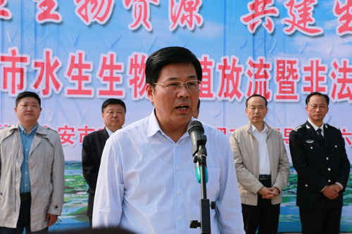活动中,朱卫东代表县委县政府致辞,他指出,我县在市委市政府的坚强领导下,紧紧围绕生态立县战略,把发展生态渔业产业发展和保护水域环境作为重点工作来抓,多年来坚持开展水生生物增殖放流活动,改善生物的种群结构,维护生物的多样性,不断提升水质和水域的生态环境。同时,大力开展打击电捕鱼等非法捕捞工作,为维护全市的绿水青山贡献力量。