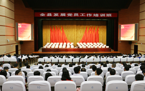为深入贯彻党的十九大精神,落实全面从严治党要求,4月19日,霍山县举办发展党员培训班。全县各乡镇(园区)党(工)委副书记、组织委员,各村(社区)文书(党务工作者),县直各系统党委书记,佛子岭水库管理处党委从事党务工作人员,县直各党(总)支部书记约500人参加培训。