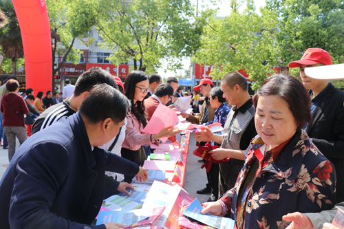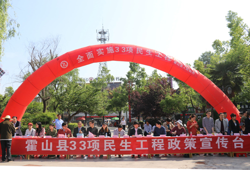 4月28日上午,霍山县在县文庙东广场举行33项民生工程政策宣传走上街头“宣传日”活动。县财政局(民生办)、县人社局、县住建局、国元保险公司等21家单位参加活动。