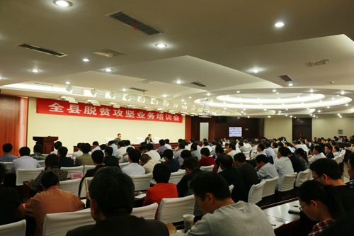 4月28日,县委书记梁国金主持召开全县脱贫攻坚业务培训会,县四个班子全体领导,县人民法院院长及人民检察院检察长出席会议,县直各帮扶单位的主要负责人,脱贫攻坚“十大工程”责任单位的主要负责人和分管负责人,乡镇园区党政主要负责人、分管负责人,县脱贫攻坚督查组和县扶贫移民局全体人员参加培训。各乡镇设分会场,所有镇村干部、驻村扶贫工作队全体人员和村扶贫专干在乡镇分会场参加会议。