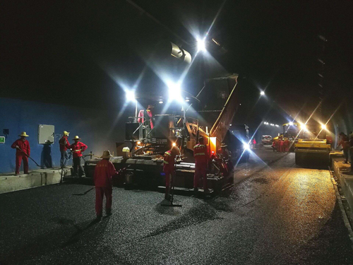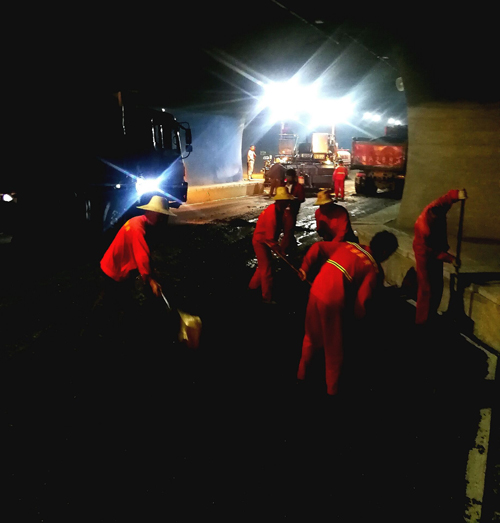 在施工现场,广大路桥工人勇挑重担,鼓足干劲,为老区建设贡献汗水和力量。截止发稿,该隧道铺油施工仍在紧张有序进行中。
