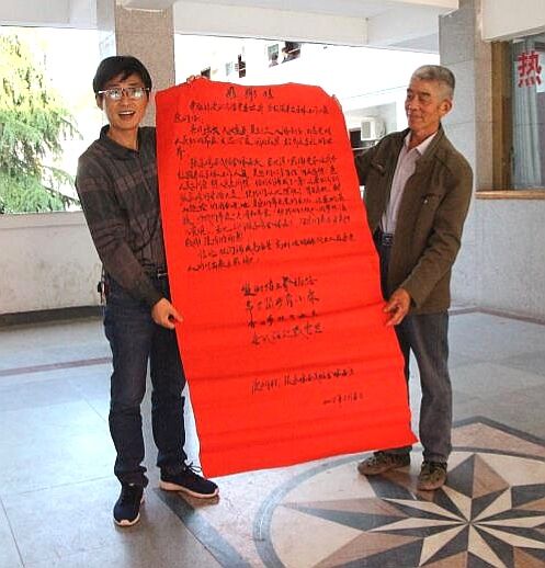今年5月1日,新建的水泥路终于通车了。真的感谢各级好领导,感谢党的好政策。为了表达全组村民的谢意,我们今天特意送来了感谢信。村民李志远激动地说。(刘伟 张璐璐)