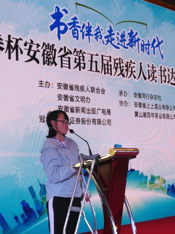 为进一步推动残疾人阅读工作,不断丰富残疾人的精神文化生活,提高残疾人文化素养,展现残疾人积极向上的精神面貌,近日,由省残联、省新闻出版广电局、省文明办共同举办的第五届安徽省残疾人“读书达人”演讲比赛在合肥举行。本届演讲主题为“书香伴我走进新时代”,来自全省16个市和2个省管县的18名优秀残疾人选手参加了比赛。我县选手安农大学生刘九龙以一篇《我希望》征服了观众,打动了评委,取得比赛三等奖的好成绩,并且获得“第五届安徽省残疾人十大读书达人”称号。(金呈先)