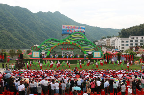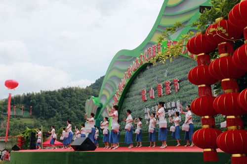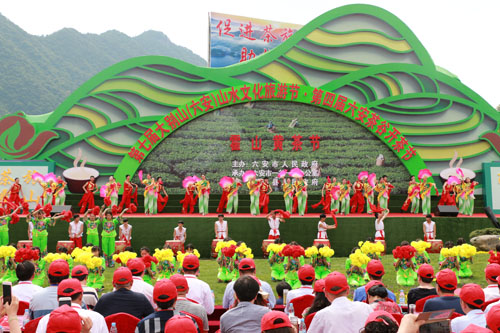 初夏时节,鱼香小镇群山滴翠、万木葱茏。各种精彩纷呈节目在这里轮番上演,让更多的人认识了霍山、熟知了霍山、并喜欢上了霍山。在开茶节活动第一现场龙井冲游客服务中心举行的文艺表演共分《美丽霍山》、《茶歌飘香》、《幸福家园》三个篇章。民俗表演《龙腾盛世》大气蓬勃的开场舞拉开了开幕式序幕;情景歌舞《喜迎宾客到霍山》、黄梅歌舞《春融霍山》全面展示了大别山老区的风土人情;大型舞蹈《新采茶舞曲》、《锄茶棵》、《幸福生活》、《我们的中国梦》彰显出皖西地区深厚的茶文化底蕴,展示出老区人民奋发有为、畅享幸福生活的精神风貌。四里八乡的群众如涓汇流,来赶这百里茶谷的开茶大集,现场人头攒动、气氛热烈、掌声雷动、欢声如潮。人们在畅谈家乡变化翻天覆地,也在憧憬着乡村振兴的美好未来。