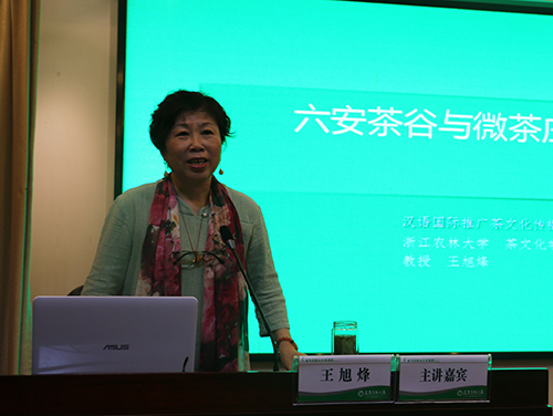 随后,茶叶专家王旭烽以《六安茶谷与微茶庄园》为题,从五个方面阐述了什么是微茶庄园、微茶庄园具备的条件和要点,分享了全球各地不同类别和类型庄园的经典案例,给现场观众带来了一场文化大餐、思想盛宴,为霍山茶旅融合发展指明了方向,为助推乡村振兴战略提供了遵循。